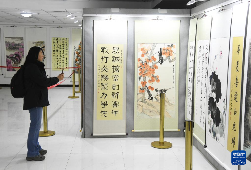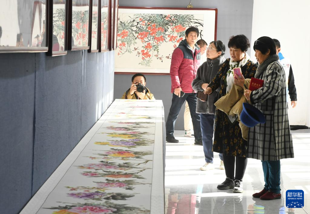 11月12日,观众参观第十一届“大美平谷·水墨周庄”书画展。
