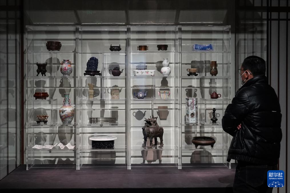 这是展览上陈列的清代象耳象足铜熏炉(11月22日摄)。