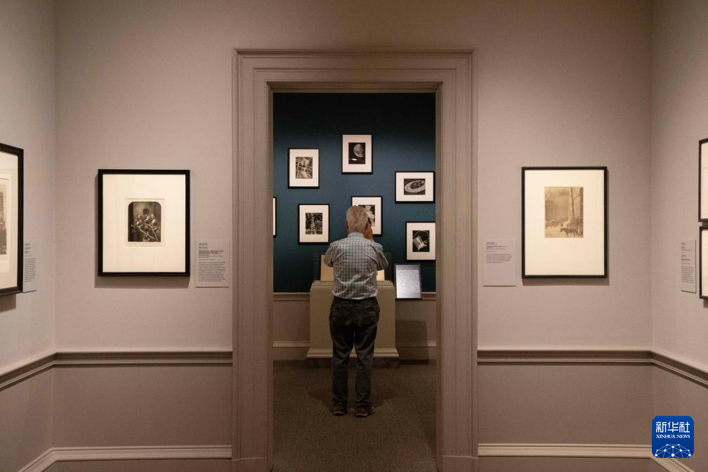 11月22日,一名参观者在美国华盛顿的国家画廊观看凹版照相作品。