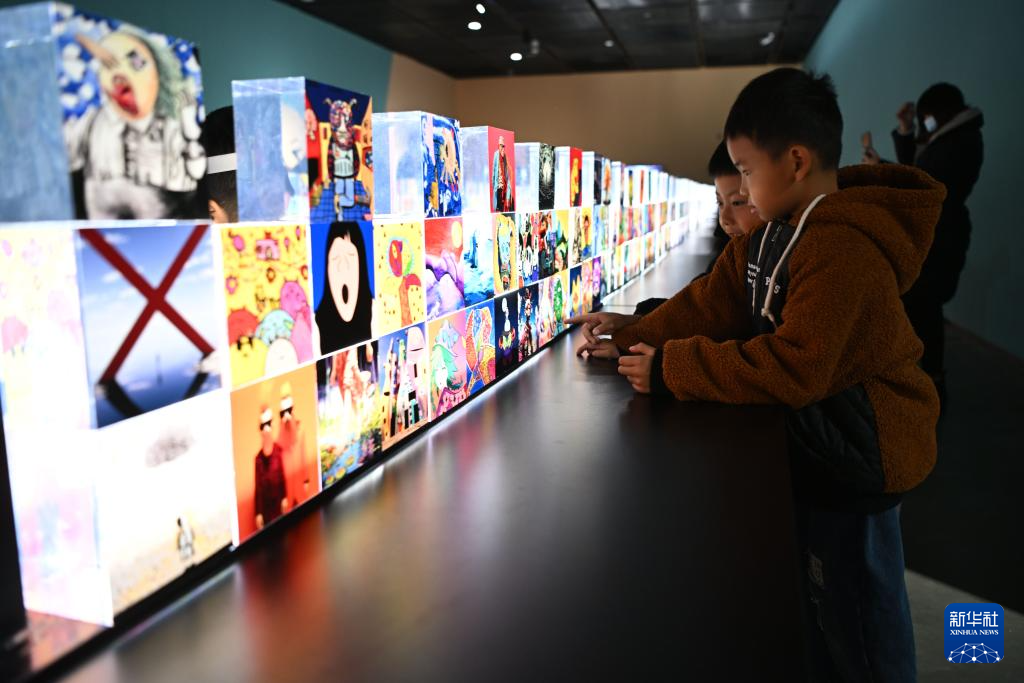 11月25日,参观者在银川当代美术馆观看“一颗种子的旅行”儿童艺术展。