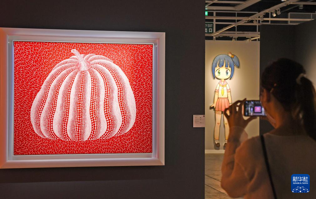 11月24日,在香港会议展览中心,观众拍摄草间弥生作品《南瓜》。
