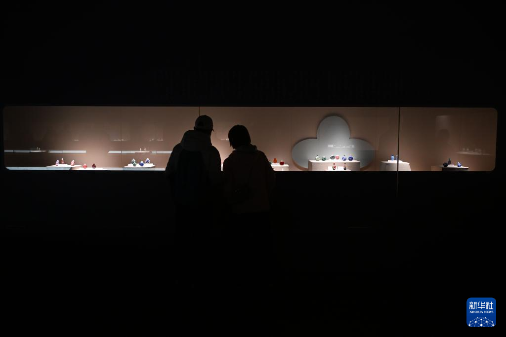 12月10日,观众在宁夏博物馆参观展出的鼻烟壶。