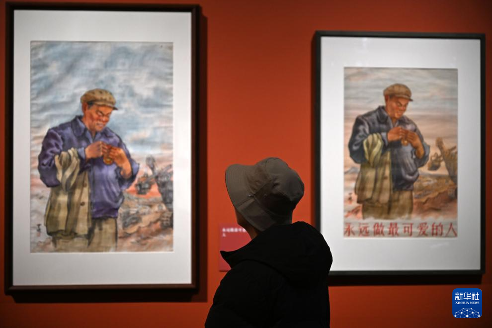 12月12日,观众在中国国家博物馆参观画作《永远做最可爱的人》(左)和印刷海报《永远做最可爱的人》。