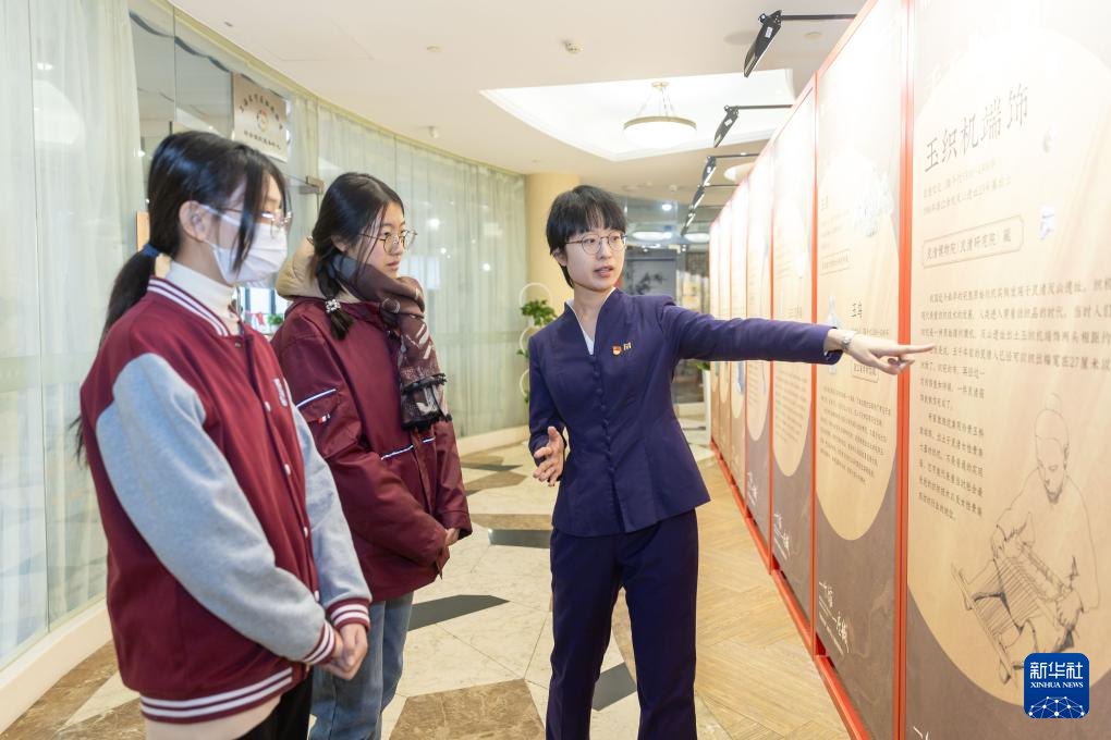 12月23日,上海博物馆讲解员为学生志愿者介绍文物历史。