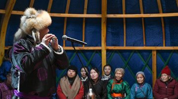 12月26日,市民在河北省群众艺术馆欣赏非遗文创作品。