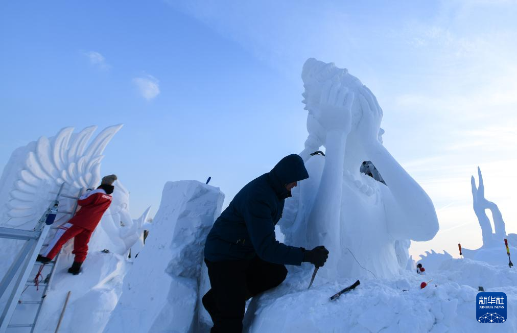 当日,在哈尔滨太阳岛雪博会园区内举行的第26届中国·哈尔滨国际雪雕比赛进入第三天的赛程。