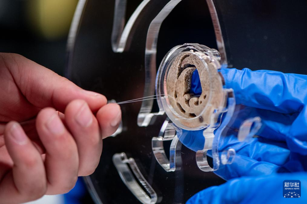 3月30日,工作人员在固定展品玉团凤。