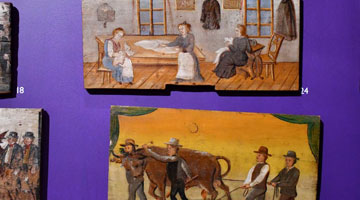 6月2日,小朋友在“何以永春”千年海丝非遗艺术展上了解闽南传统撵轿。