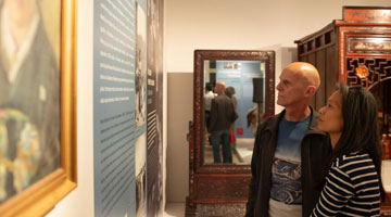 6月9日,人们在瑞典首都斯德哥尔摩中国文化中心欣赏中国景泰蓝传统工艺品。