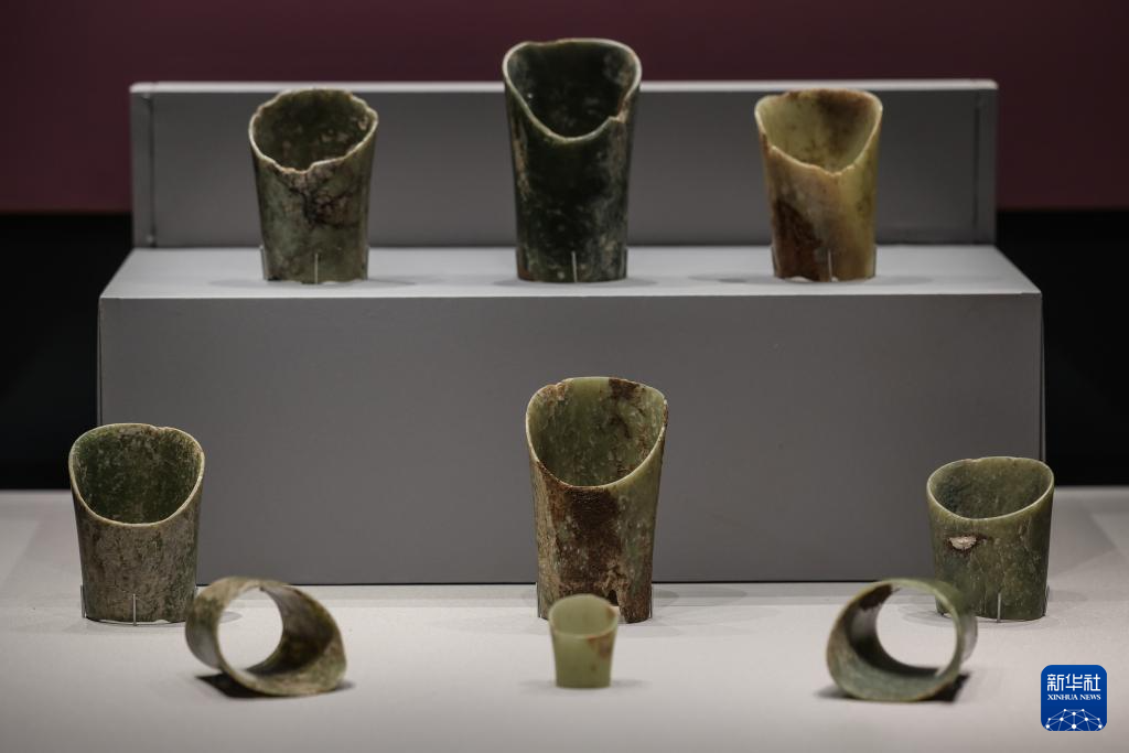 6月8日在“文明之光——红山·良渚与中华文明”主题展览上拍摄的红山文化玉箍形器。