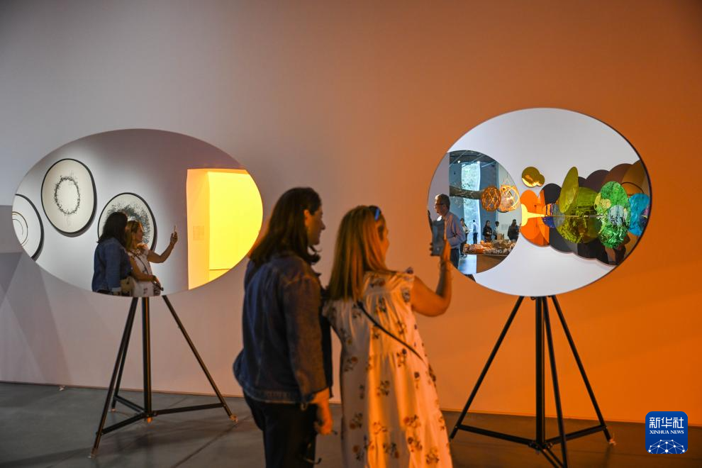 10月10日,参观者在土耳其伊斯坦布尔现代艺术博物馆内观看展品。