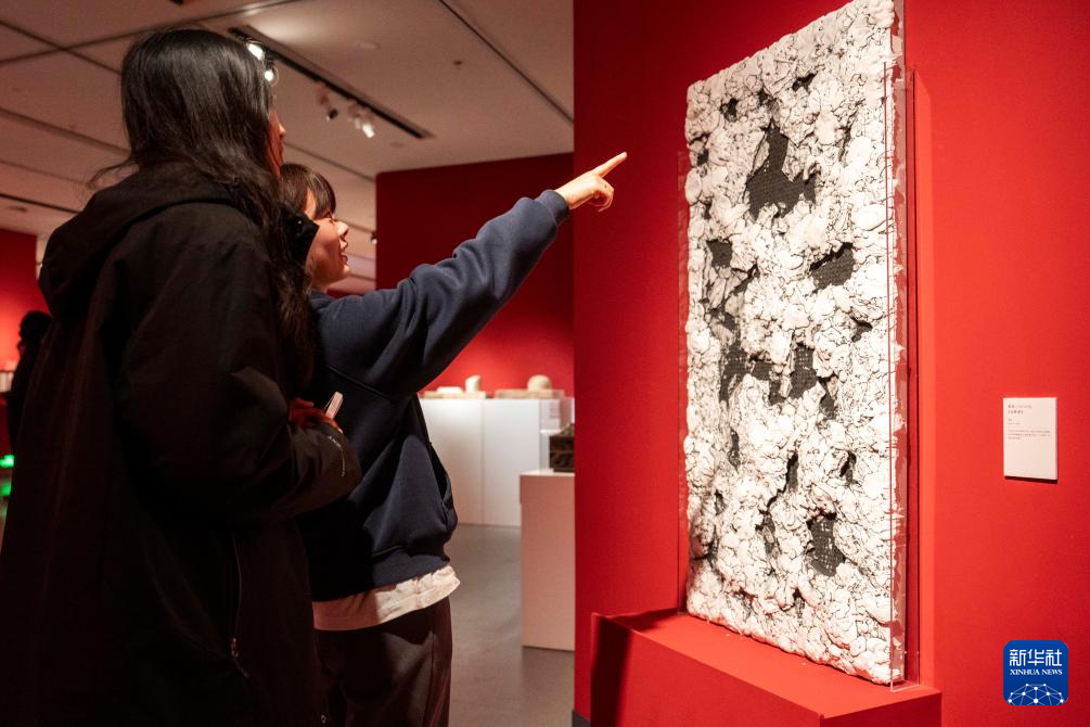 3月18日,观众在株洲博物馆观看展出的装置艺术作品。