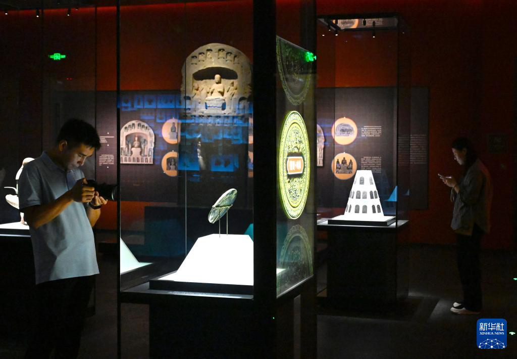 7月16日,参观者在汉魏洛阳故城遗址博物馆参观。