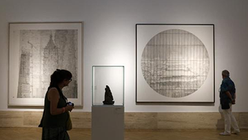 这是7月22日拍摄的“涅瓦河畔的遐思——列宾艺术特展”现场。