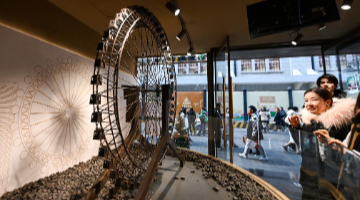 1月7日,观众在中国美术馆观看展出的阴山岩画主题绘画作品。