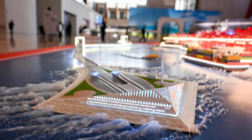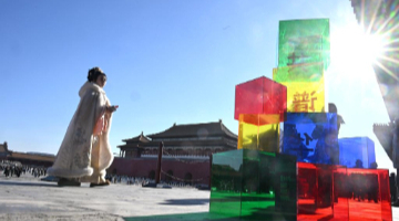 这是1月7日拍摄的阴山岩画艺术展开幕式现场。