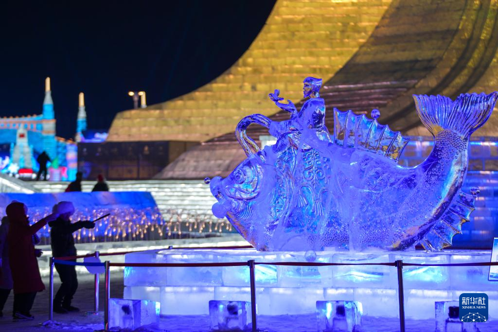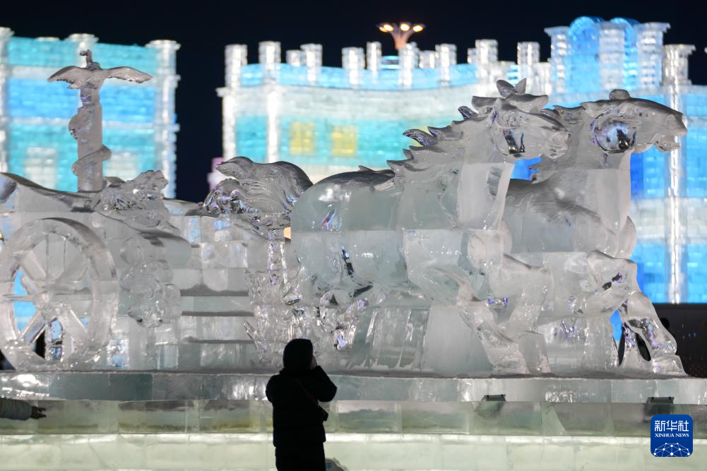 近日,一批冰雕新作在哈尔滨冰雪大世界亮相,与第37届中国·哈尔滨国际冰雕比赛作品及园区原有冰雕遥相辉映,共同点亮北国冬夜。