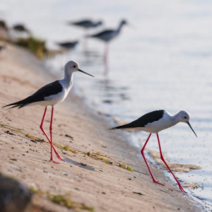 这是2月6日在肯尼亚内罗毕的丹多拉污水处理厂拍摄的黑翅长脚鹬。新华社记者 谢剑飞 摄