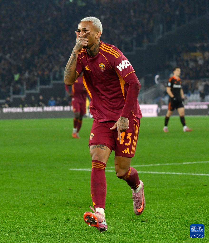 12月15日,罗马队球员韦斯利·利马在比赛中庆祝进球。