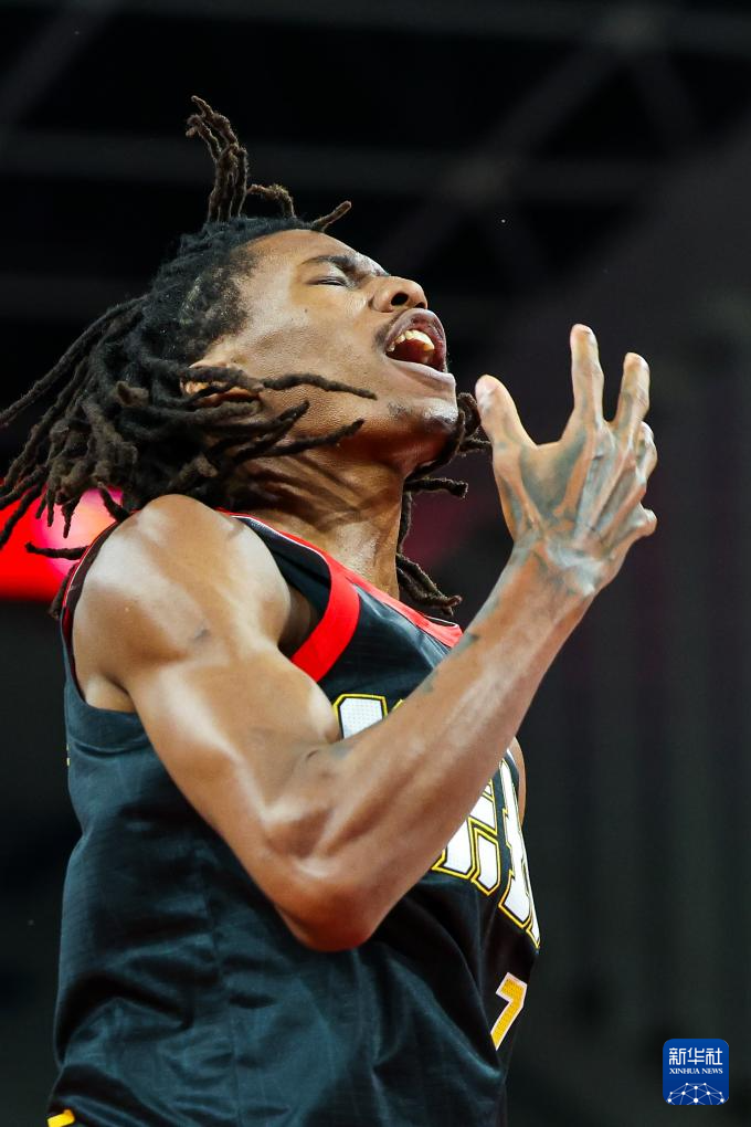 12月16日,深圳马可波罗队球员卡巴在比赛中扣篮。