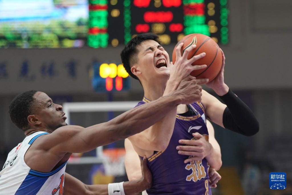 12月18日,北京控股队球员朱松玮(右)在比赛中突破受阻。