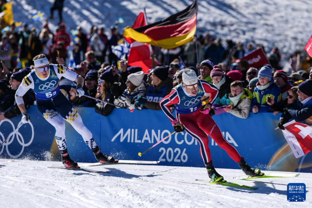 2月18日,挪威队选手克莱博(右一)在比赛中。