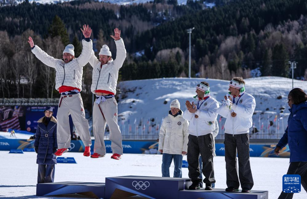 当地时间2月18日,在意大利泰塞罗举行的米兰-科尔蒂纳冬奥会越野滑雪男子团体短距离(自由技术)比赛中,挪威队夺得冠军。