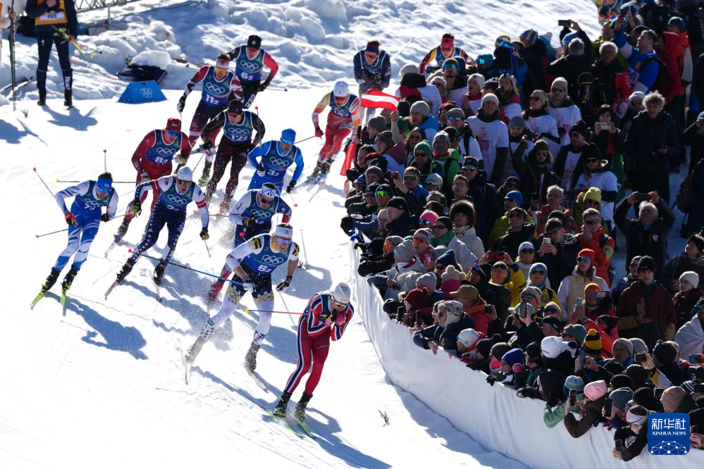 2月18日,挪威队选手克莱博(中)在比赛中。