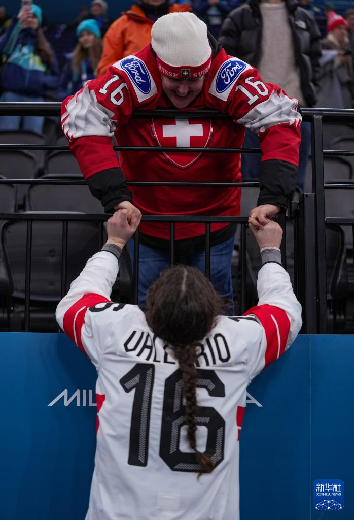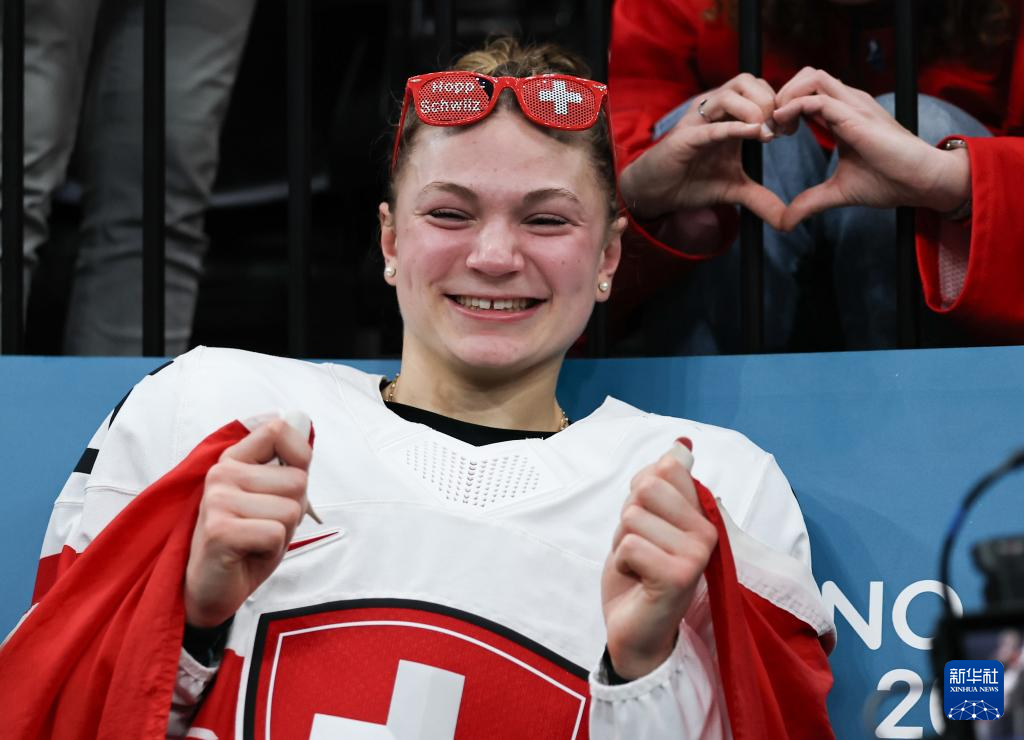 2月19日,瑞士队球员阿林娜·米勒在赛后庆祝。