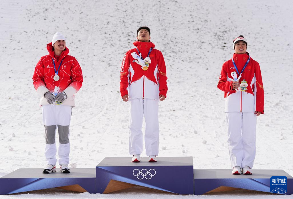 当地时间2月20日,在意大利利维尼奥举行的米兰-科尔蒂纳冬奥会自由式滑雪男子空中技巧决赛中,中国选手王心迪和李天马分获冠军和季军。