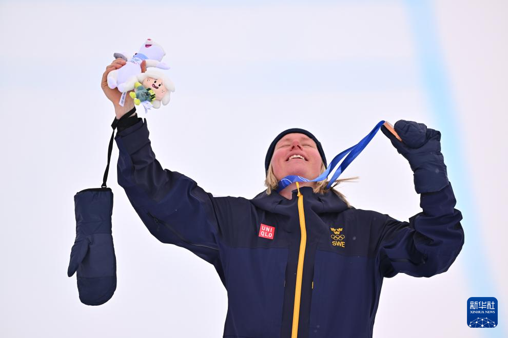 2月20日,季军瑞典选手桑德拉·内斯隆德在颁奖仪式上。