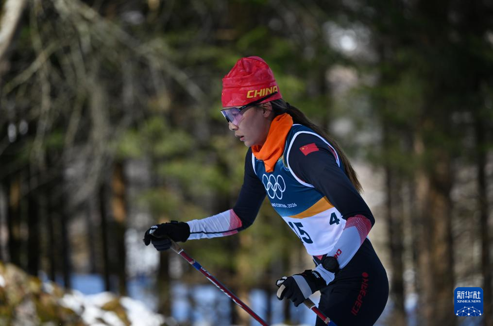 2月22日,中国选手池春雪(右)在比赛中。她获得第33名。