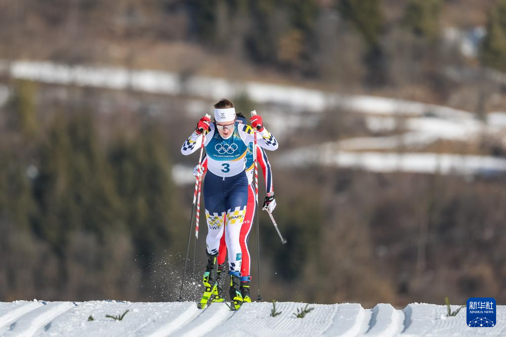 2月22日,瑞典选手安德松(右一)、挪威选手海迪·文格(右二)在比赛中。最终,她们分获冠、亚军。