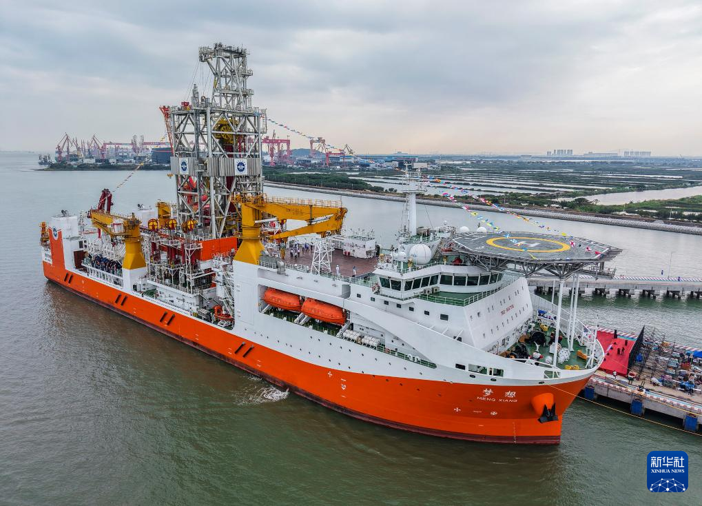这是靠泊在广州海洋地质调查局科考码头的大洋钻探船“梦想”号(2024年11月17日摄,无人机照片)。