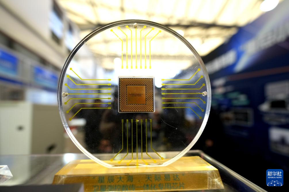 3月12日在2026首届上海商业航天大会暨展览会上拍摄的一款卫星测控数传一体化专用芯片。