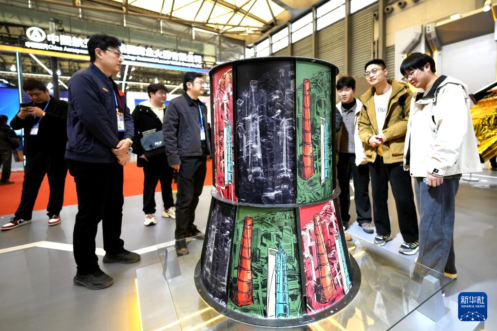 3月12日,观众在2026首届上海商业航天大会暨展览会上参观一款卫星承力桶。