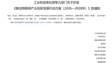 九部門印發(fā)《方案》推動物聯(lián)網(wǎng)產(chǎn)業(yè)創(chuàng)新發(fā)展