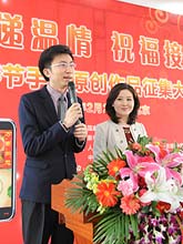 (2)彩信:圖片內(nèi)容契合活動主題,格調(diào)健康向上。手機上傳彩信大小在50K以內(nèi),128×128像素或160×120像素;互聯(lián)網(wǎng)上傳電子賀卡大小500K以內(nèi)。