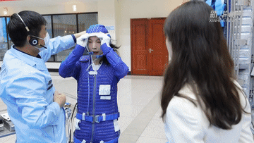 這里是離心機(jī)訓(xùn)練場。離心機(jī)由一個八米長的旋轉(zhuǎn)臂和飛行模擬座艙組成,它所產(chǎn)生的離心力通常用地心引力的倍數(shù)表示。例如2G等于兩倍地球引力,大概相當(dāng)于過山車從最高點(diǎn)急速俯沖到最低點(diǎn)時的壓迫感。普通人最多能承受4G的離心力,而像亞平一樣的航天員則要進(jìn)行8G的過載訓(xùn)練。
