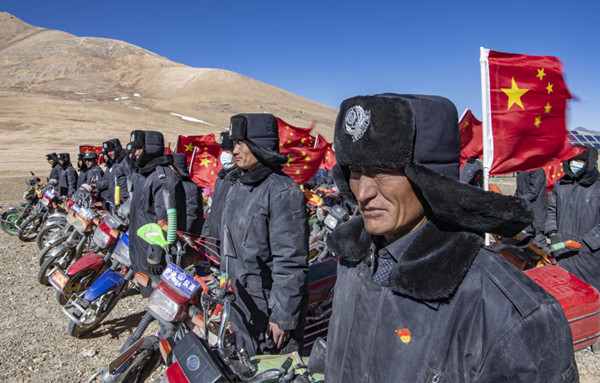 “從小看著長(zhǎng)輩們巡邏,聽他們?cè)谀翀?chǎng)上為我們宣講黨的政策,特別受教育。”旦增石塔說,作為年輕人,要將傳統(tǒng)傳下去,把幸福守下去。
