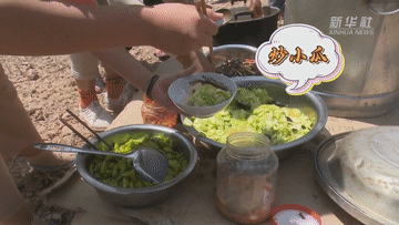 人們在臨時(shí)搭建的簡易廚房忙碌