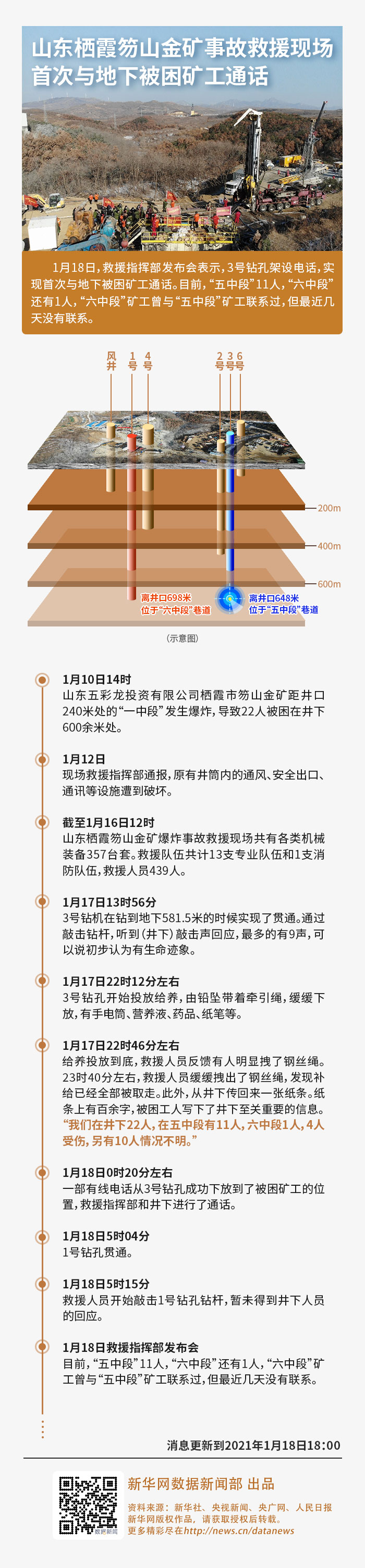 山東棲霞笏山金礦事故救援現(xiàn)場首次與地下被困礦工通話