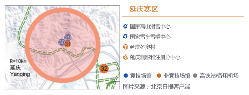 ??? 張家口賽區(qū)位于河北省張家口市崇禮區(qū),共有7個(gè)競(jìng)賽和非競(jìng)賽場(chǎng)館,其中4個(gè)為新建場(chǎng)館、1個(gè)為現(xiàn)有場(chǎng)館、2個(gè)為臨時(shí)場(chǎng)館。