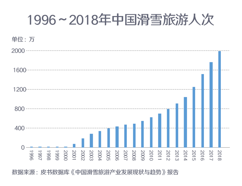 ??? 從1996年發(fā)展至今, 我國(guó)滑雪旅游人次實(shí)現(xiàn)了質(zhì)的飛躍。截至2018年底, 我國(guó)滑雪人次為1970萬, 同比增長(zhǎng)12.57%。基于龐大的滑雪人次和市場(chǎng)規(guī)模,中國(guó)已被認(rèn)為是全球主要滑雪市場(chǎng)之一,年滑雪人次已超過一些擁有成熟滑雪市場(chǎng)的國(guó)家。