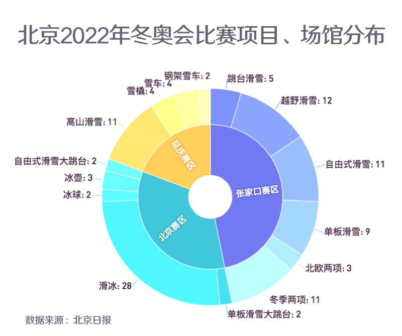 北京冬奧會(huì)設(shè)有北京、延慶和張家口三個(gè)賽區(qū),共計(jì)劃使用25個(gè)場(chǎng)館,其中直接用于賽事的競(jìng)賽場(chǎng)館12個(gè)。