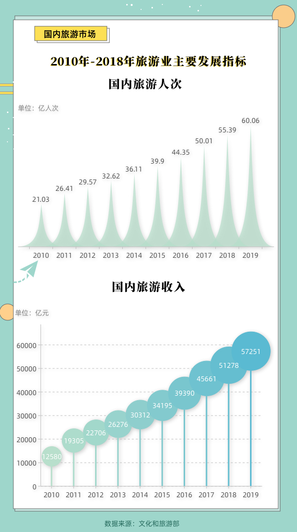 ????? 隨著生活水品的不斷提高,人民的旅游消費潛力被進(jìn)一步激發(fā)。假日經(jīng)濟(jì)所釋放的潛力與活力已成為助推國內(nèi)經(jīng)濟(jì)持續(xù)穩(wěn)定恢復(fù)、構(gòu)建新發(fā)展格局的重要動力。根據(jù)文化和旅游部發(fā)布的數(shù)據(jù),近年來國內(nèi)旅游市場持續(xù)平穩(wěn)增長。