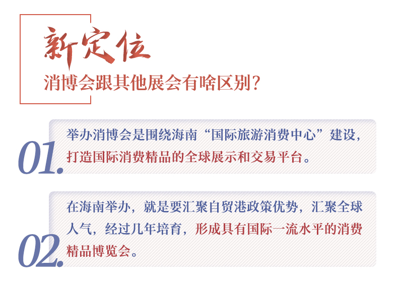 ??? 本屆消博會圍繞海南 "國際旅游消費中心"建設,匯聚海南自貿(mào)港政策優(yōu)勢,打造國際消費精品的全球展示和交易平臺。“消博會可實現(xiàn)全球買家、賣家的直接交易,引進國外優(yōu)質(zhì)消費品,彌補國內(nèi)高端供給不足,是暢通國內(nèi)大循環(huán)的載體;聯(lián)通兩個市場,推動商品、服務和要素順暢流動,也是促進雙循環(huán)的載體”,對于舉辦消博會的意義,商務部副部長王炳南這樣闡釋。