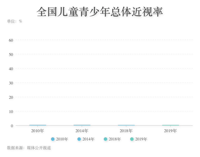 ????? 其中以2018年的調查統(tǒng)計為例,6歲兒童近視率為14.5%,小學生近視率為36.0%,初中生近視率為71.6%,高中生為近視率達81.0%。兒童和青少年近視已成為中國視力損傷的主要原因。