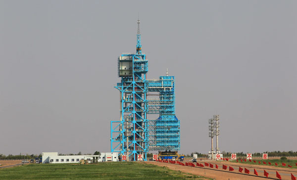 酒泉發(fā)射中心發(fā)射場(chǎng)神舟九號(hào)飛船等待發(fā)射
