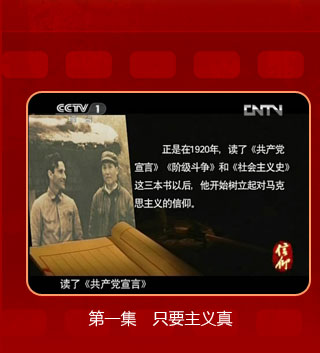 歷史文獻(xiàn)紀(jì)錄片《信仰》由中共中央組織部、中共中央文獻(xiàn)研究室、中共中央黨史研究室、中央電視臺聯(lián)合攝制。 歷史文獻(xiàn)紀(jì)錄片《信仰》,認(rèn)真貫徹落實(shí)黨的十七屆六中全會精神和胡錦濤總書記在慶祝中國共產(chǎn)黨成立90周年大會上的重要講話精神,以黨的90多年歷程為背景,以理想信念教育為主題,通過講述革命、建設(shè)、改革各個歷史時期優(yōu)秀共產(chǎn)黨員堅(jiān)持理想信念、發(fā)揮先鋒模范作用、保持先進(jìn)性和純潔性的故事,闡述了中國共產(chǎn)黨人的核心價值觀。[簡介] [解說詞] |